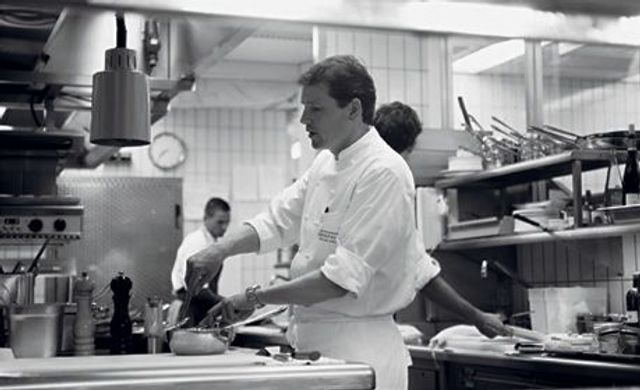 2. Für den Fond Fenchel und Kartoffel grob würfeln, in 1 EL Öl andünsten, würzen, mit Pernod und ½ l Brühe ablöschen, köcheln, bis alles weich ist. Durch ein feines Sieb drücken. Restliche Brühe und Öl unterrühren, fein geschnittenes Fenchelgrün zugeben.