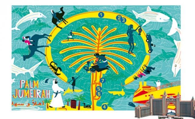 Im soeben eröffneten »Atlantis Hotel«, dem Ersten auf der Palme, empfängt einen langustenfarbener Unterwasser-Schick mit Deko-Krabben; Aquarien mit Walhaien und Rochen, ein Wasserpark, in dem man in Glasröhren durch Haifischbecken saust, und ein Delfin-Begegnungszentrum. Man will den Planern nicht gleich Größenwahn unterstellen – aber bei so einem ausgeprägten Hang zum Überdimensionierten verwundert es kaum, dass im hauseigenen Souvenirshop eine Kollektion berühmter Bauwerke der Erde aus Glas angeboten wird: Eiffelturm, Big Ben, Gizeh-Pyramiden und dazwischen, wie selbstverständlich, das Hotelgebäude. (1) Atlantis Hotel mit Atlantis Waterpark und Dolphin Bay,