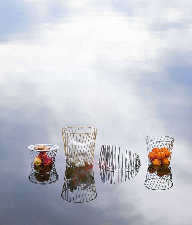Stahldraht: Der gefiel Deltour für ihre Diplomarbeit. Ein Industriewerkstoff für den Alltagsgebrauch. Sie entwarf einen Papierkorb und suchte eine Firma, um einen Prototyp zu fertigen. Fand eine passende in der Nähe von Dijon im Burgund, verbrachte zwei Monate lang mit Notizblock und Fotoapparat in den Werkstätten. Stand jeden Morgen um sieben in der Fabrik, schaute den Arbeitern zu, begriff nach und nach, mit welcher Maschine sich was machen lässt. Heraus kam der Papierkorb mit dem eleganten, schlichten Drahtgeflecht, der Alberto Alessi so gut gefiel, dass er Deltour mit einer ganzen Serie beauftragte. Zu ihrer Kollektion »A Tempo« gehören auch ein Abtropfgitter für Geschirr und ein Schirmständer. Nach dem Stahl nahm die Französin sich weichere Materialien vor, entwarf unter anderem einen Tisch aus Holz und Möbelstoffen für den dänischen Textildesigner Kvadrat. Derzeit arbeitet sie mit Keramik und Kork. »Ich will alles ausprobieren und nicht auf ein Material festgelegt sein.«