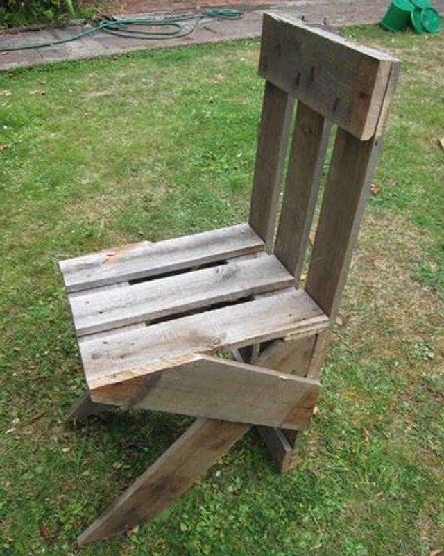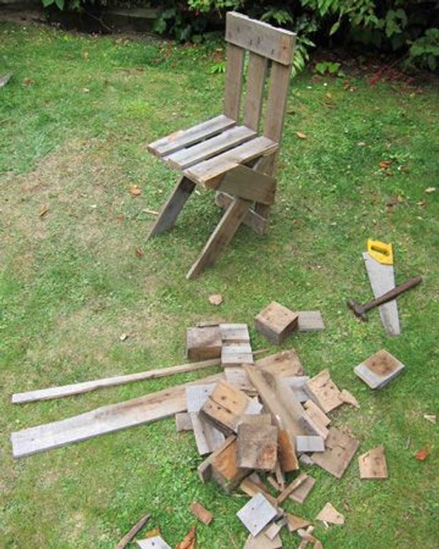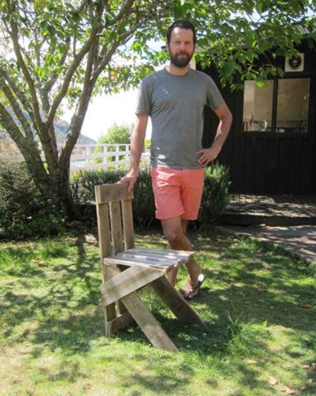 Als wir Martino Gamper für diese Geschichte anfragten, war er gerade auf Reisen in Neuseeland. Was ihn, der berühmt ist für seine DIY-Stühle aus Resten und Fundstücken, nicht daran hinderte, binnen weniger Stunden einen zu bauen. Als Grundmaterial diente ihm eine Europalette, die überall aufzutreiben ist, sogar auf der anderen Seite der Erde. »Standard-Paletten findet man bei nahezu jedem Discounter, auf Märkten oder in Lagerhallen. In der Regel bekommt man sie umsonst. Der Bau dieses Stuhls war eine nette kleine Übung im Garten meiner Schwiegerfamilie.«