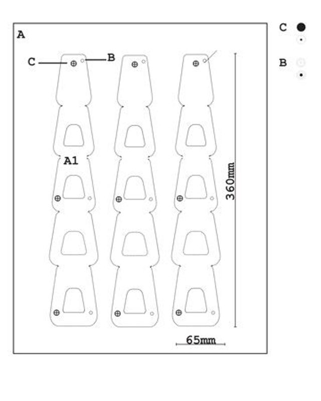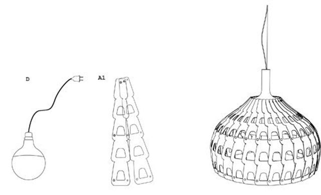Zugegeben, diese Hängeleuchte erfordert etwas Geduld. Um sie zu bauen, sollte man schon einen halben Tag einplanen, mindestens, denn man muss viel Pappe schneiden. Zur Belohnung erhält man eine Lampe, die raffinierte Lichtreflexe und Schattenspiele an die Wand zaubert. Urquiola ermuntert Nachbauer ausdrücklich zu experimentieren, z. B. mit Pappen in zwei verschiedenen Farben: »Das gibt der Lampe selbst eine verspielte Note und erzeugt im besten Fall chromatische Lichteffekte. Mir war wichtig, etwas zu entwerfen, was nicht viel kostet und mit Dingen zu machen ist, die sich in jedem Haushalt finden.«