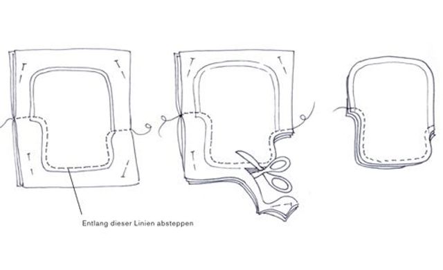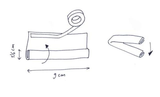 1 Nähmaschine. 2 Stecknadeln. 3 Thermische Rettungsfolie (Outdoor-laden). 4 Saumband. 5 Wasserfester Marker. 6 Doppelseitiges Klebeband, dünn. 7 Wiederablösbares Klebeband. 8 Schere. 9 Maßband. 10 Garn.