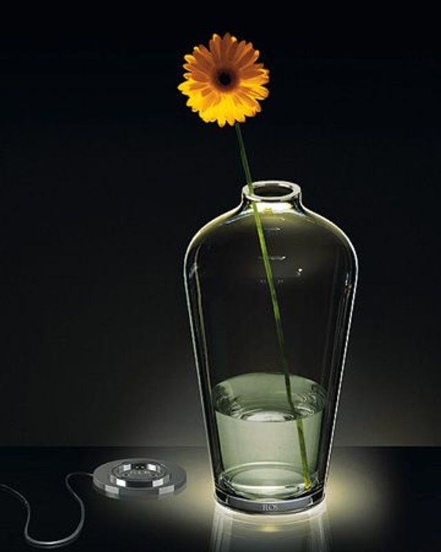Kurz nach diesem Projekt begann er für Swarovski zu arbeiten: Ein Kronleuchter fiel Piero Gandini von Flos auf – der einflussreichen Mailänder Leuchtenfirma. Für Flos hat Cocksedge eine Lampe entworfen (obwohl das Wort Lampe hier fast schon zu schlicht ist), die »Life 01« heißt. Sie basiert auf dem kuriosen Umstand, dass die meisten Pflanzenstängel Elektrizität leiten. »Blätter sind wie Schaltkreise«, sagt Cocksedge. Bei ihm schließt eine Blume in einer mit Wasser gefüllten Vase den Kreis und wird zur Lichtquelle. Natürlich nur, bis sie verwelkt.