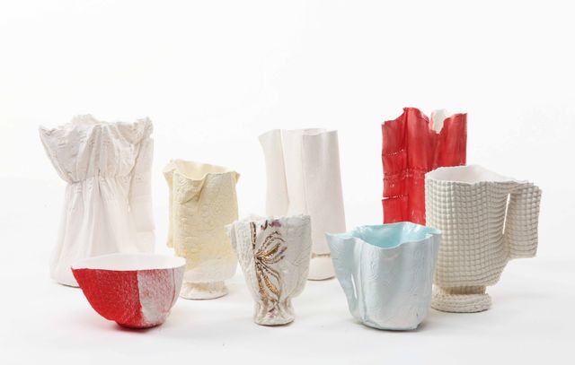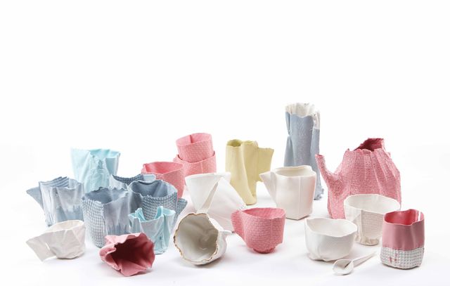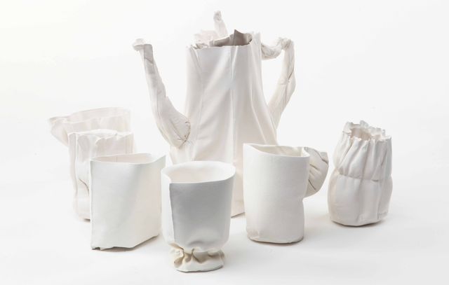 Kann man sich ein Teeservice nähen? Rachel Boxnboim hat es probiert. Der Stoff diente der israelischen Designerin jedoch nur als Gussform. Sie nahm die Maße der alten Teekanne ihrer Mutter und schneiderte eine Form zurecht. Im Ofen verbrannte der Stoff rückstandslos, ließ aber seine Textur zurück. Die entstandene Kollektion »Alice« war das Abschlussprojekt ihres Studiums an der Bezalel Academy of Art and Design in Jerusalem. Zwei Jahre später verwendete Boxnboim die Technik für eine Vasenserie in einfacherer Form. Die Designerin wuchs im israelischen Haifa auf und zog für ihr Studium mit 21 Jahren nach Jerusalem. Sie sagt, die Vielfalt der Stadt hätten ihre Arbeit beeinflusst. Heute arbeitet Boxnboim als Produktdesignerin und Grafikerin in Tel Aviv. Sie produziert ihre Keramikarbeiten auf Anfrage und verlangt dafür 150 bis 350 Euro.