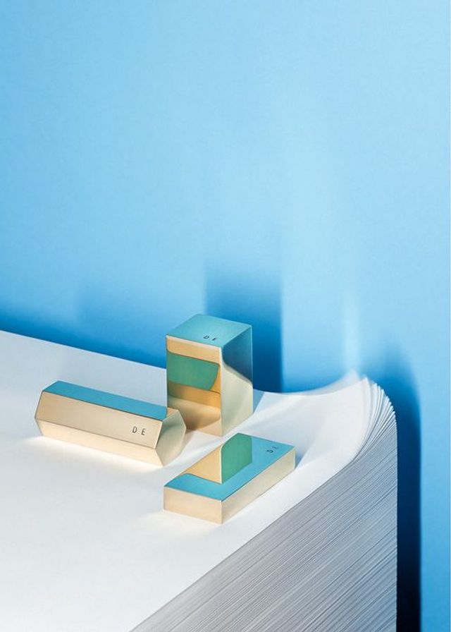 »Handmade«-Ausstellung 2012 in Mailand paarte die Zeitschrift Wallpaper junge Designer mit renommierten Firmen. Daniel.Emmas Pendant war Guerlain, so entstanden Puderdose, Lippenstift- und Eyelinerhülle aus Messing und Aluminium. Guerlains Kosmetik verschwand in Kugeln, Halbkreisen und Säulen. Erst wer die Stücke in die Hand nimmt, begreift ihre Funktion. »Ich mag es, wenn Gegenstände überraschen«, sagt Emma, die auch für die Farben zuständig ist. Daniel: »Hätte ich allein das Sagen, wäre alles sehr weiß und ein klein wenig schwarz und silbern.« – »Ich würde viel zu sehr in die Farbtöpfe greifen«, lacht Emma. Die Balance funktioniert, das Rosa aus dem zweiten Semester ist Vergangenheit.