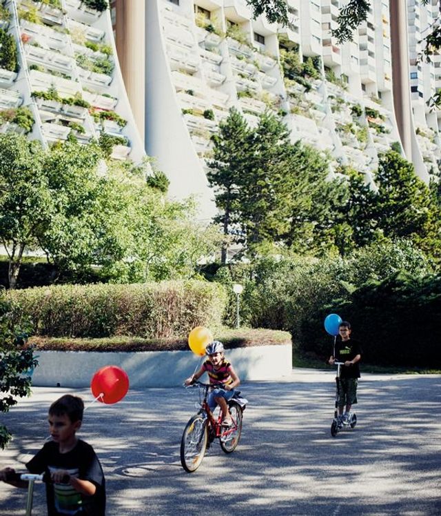 Alt-Erlaa ist ein in Europa einzigartiger Entwurf, der die klassischen Wohnhierarchien aufhebt und auch schlechter Verdienenden ermöglicht, was sonst den Wohlhabenden vorbehalten ist: freie Sicht, Zugang zum Wasser, eingebettet in der Natur. 180 Meter liegen zwischen den Häusern, weit mehr als in den vermeintlich feinen Wohngegenden der Innenstadt – und das, obwohl es sich um die am dichtesten besiedelte Gegend Wiens handelt. Und zwischen den Häusern ein großflächiger Park, dessen Bäume alle Geräusche der Anwohner zu schlucken scheinen.