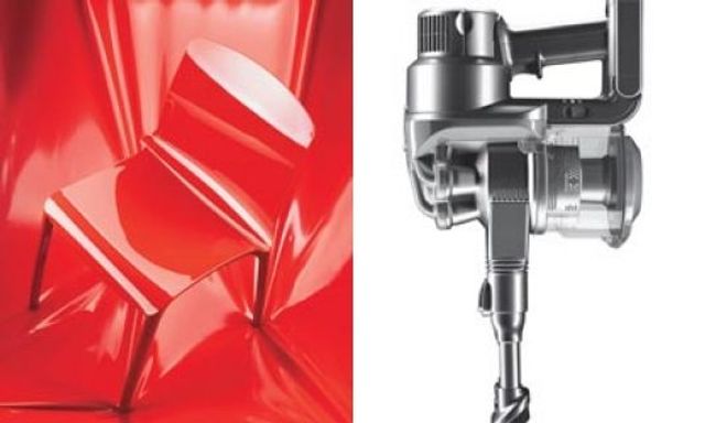 Links: 106 Revoluzzer: Der rote Plastikstuhl »Tiffany« von Casprini könnte endlich mal den langweiligen weißen Plastikstuhl auf den schöneren Terrassen der Welt ablösen. Rechts: 169 Krümel-Quirl: Den ersten Handstaubsauger »DC 6« von Dyson gibt es nur in Orange. Weiter zu Teil 2