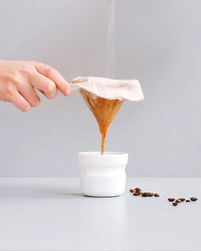 Wie hat man eigentlich früher Kaffee gemacht - als es noch keine computergesteuerten Espressoautomaten mit Internetanschluss, keine röchelnden Bürokaffeemaschinen und keine Melitta-Filter gab? Immerhin wurde das erste Wiener Kaffeehaus 1685 eröffnet. Muss man wirklich alles, selbst die einfachste Übung, technologisieren? Diese Frage stellte sich Cecilie Manz und entwarf eine Vorrichtung - so simpel, praktisch und formschön, dass sie sicher auch Angus MacGyver gefallen hätte, dem einfallsreichsten Survival-Bastler der TV-Geschichte: Ein Draht wird um eine Konservendose kreisförmig gebogen, eine Baumwolltüte um den Draht genäht - fertig. Röchelt garantiert nicht, passt in jede Handtasche und verströmt in Aktion den gleichen magischen Duft.