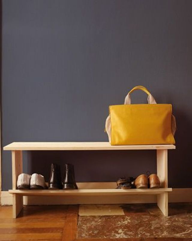 Dieses Möbel löst ein zentrales Problem des Flurs: Wohin mit den Schuhen? Gerade in Familienhaushalten oder WGs ist der Flur gern mal gepflastert mit einem bunten Verhau an Schuhen. Die muss man sich natürlich am Boden kauernd anziehen. Der »Schuh Mann« – eine Namensanspielung an eine Münchner Bar, in die Deltour gerne ging, als sie noch in München bei Konstantin Grcic arbeitete – ist Sitzbank und Schuhregal in einem. Schnell zusammengezimmert, fügt sie sich dank ihres puristischen Designs in jedes Interieur ein und ist nach Belieben in den Maßen skalierbar. Nach unserer Anfrage musste die Französin nicht lange überlegen, was sie entwerfen sollte: »Ich wollte schon immer mal eine Bank machen – jetzt habe ich ihr noch einen zweiten Nutzen entlockt.«