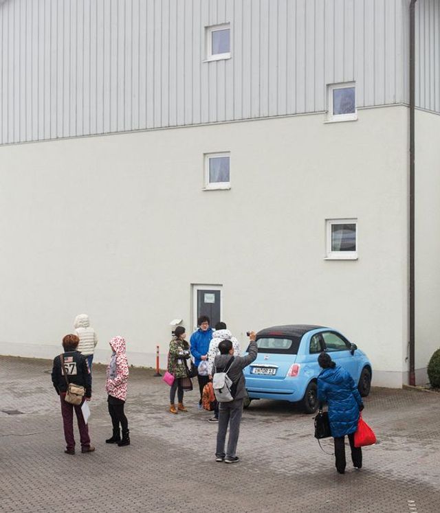 Wir übernachten im »Feringapark Hotel« im Münchner Vorort Unterföhring, in der Früh weist uns eine grantige Bedienung den halogenbeleuchteten »Gruppenfrühstücksraum« zu, der Kaffee in den Kannen ist lauwarm. Nur der Fotograf wird in den getäfelten Saal für »Individualfrühstücker« gebeten, wo spürbar besser gelauntes Personal in Wohnstuben-Atmosphäre laktosefreie Milch anbietet. Chinesische Reisegruppen haben keinen Zutritt.