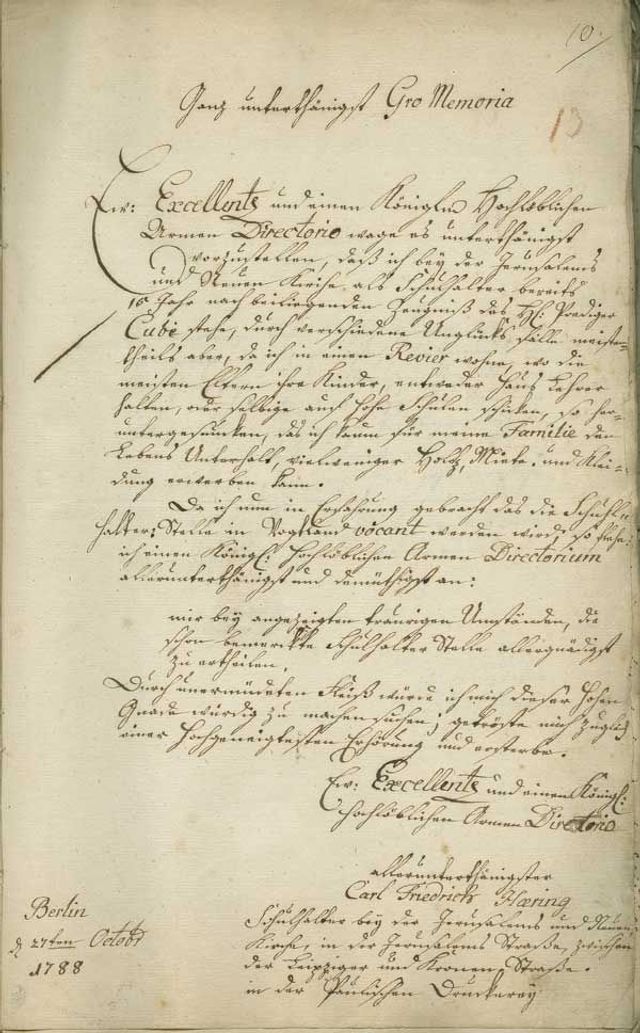 Ew: Excellente und einem Könglich Hochlöblichen Armen Directorio wage es unterthänigst vorzustellen, daß ich (…) durch verschiedene Unglücksfälle, meistentheils aber, da ich in einem