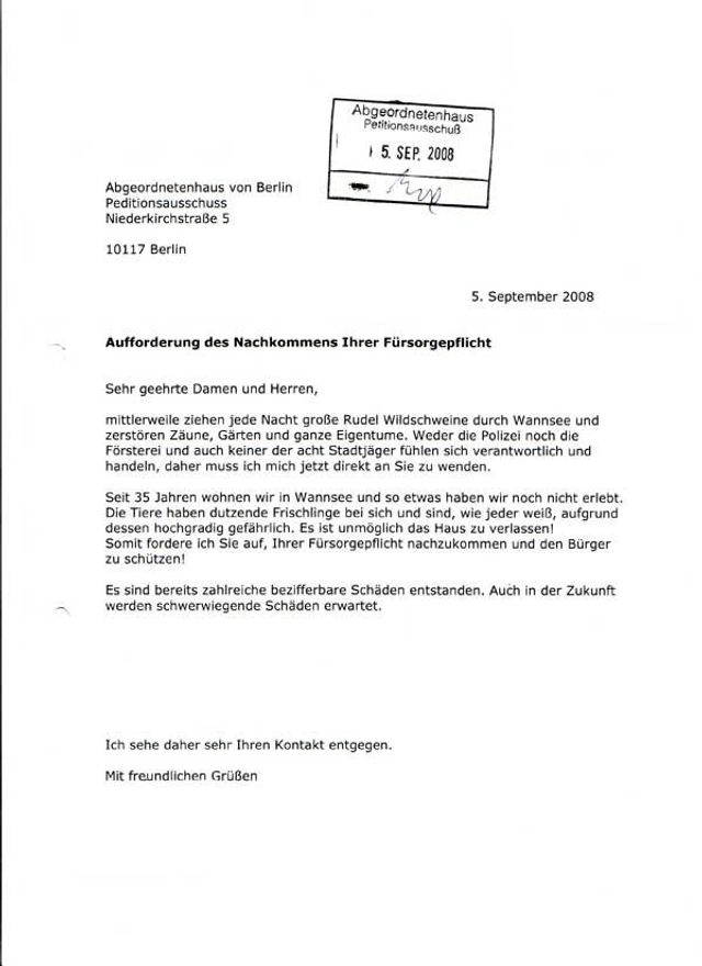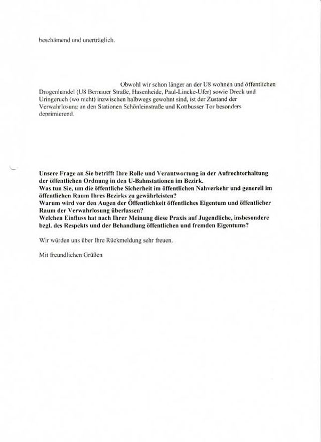 "NEHME VERANLASSUNG, DIE POLIZEIBEHÖRDE ZU BITTEN"