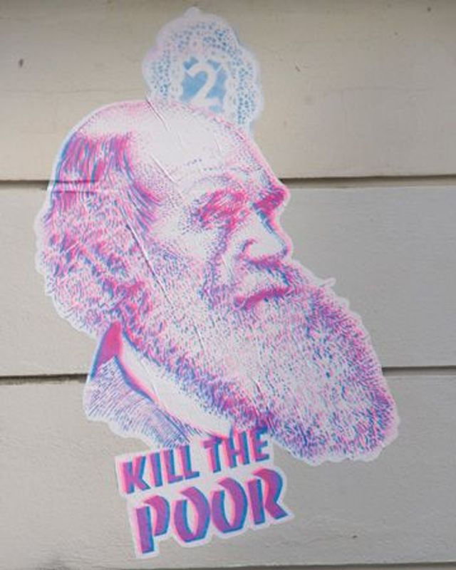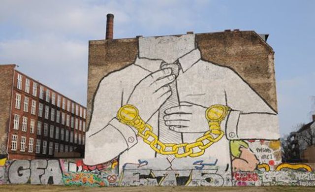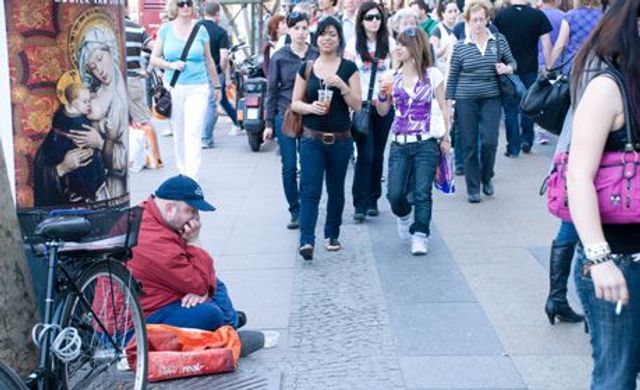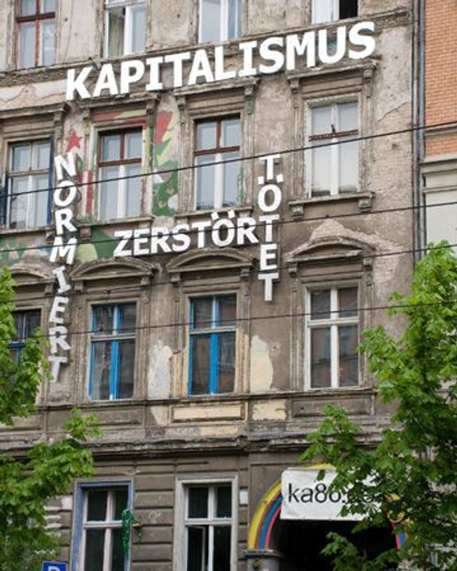 Unruhig wirkt Deutschland erst in Berlin, wo ein Abfalleimer am Pariser Platz sechsmal in 20 Minuten auf Pfandflaschen durchwühlt wird, wo ein Gespräch in einem Kreuzberger Café ungezählte Male von bettelnden Händen unterbrochen wird, wo Kaiser’s-Filialen aus Solidarität zu Barbara E. besprüht werden mit Sprüchen wie »Gegen miese Jobs und ein schlechtes Leben« und wo gleich hinter der Verdi-Zentrale jemand ein schwarzes Plakat aufgehängt hat, auf dem steht: »Die Grenze verläuft nicht zwischen den Völkern, sondern zwischen oben und unten!«