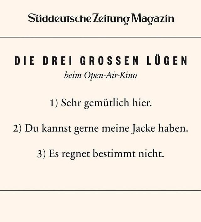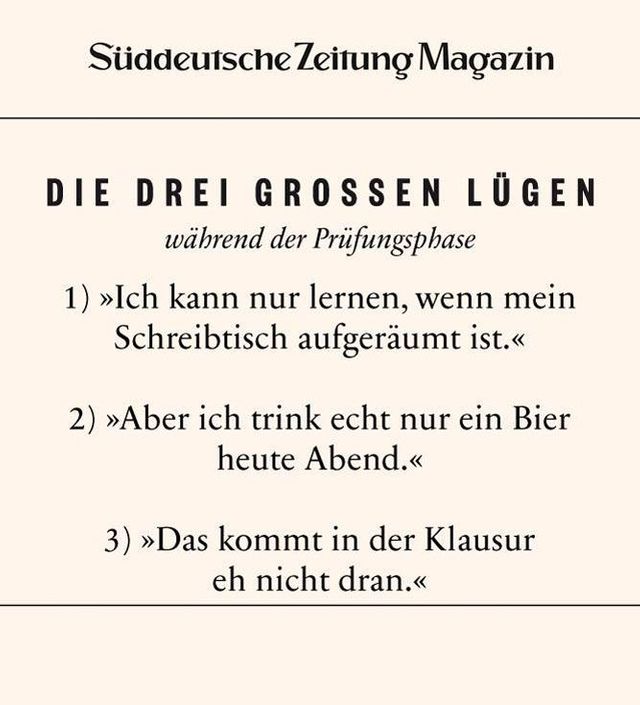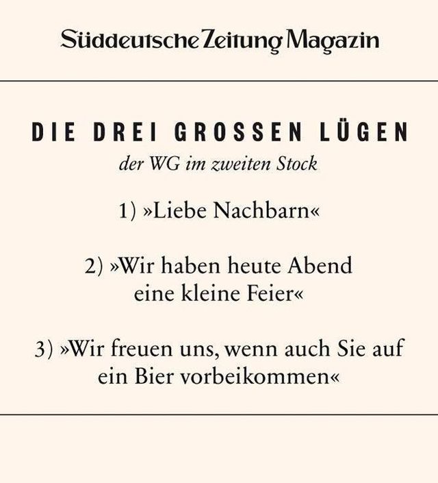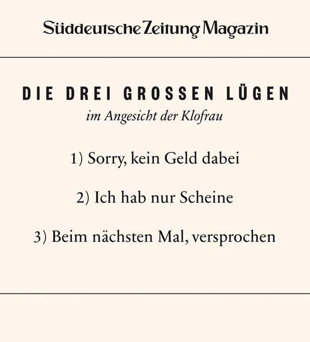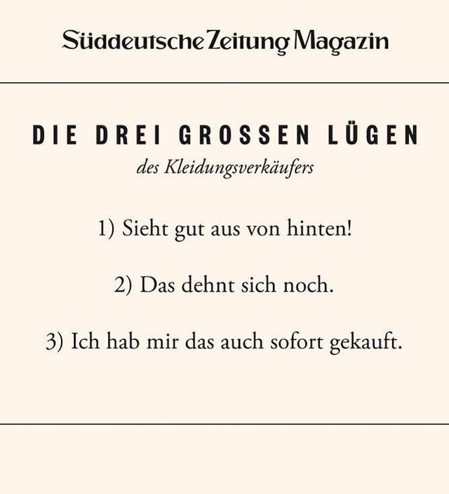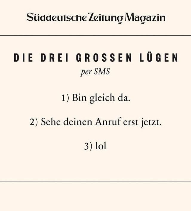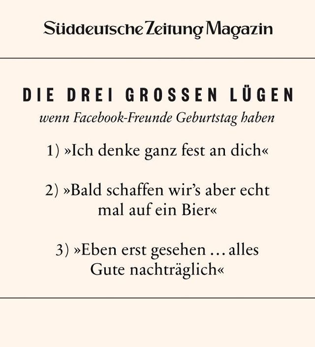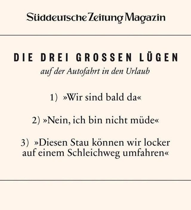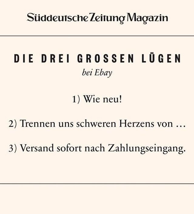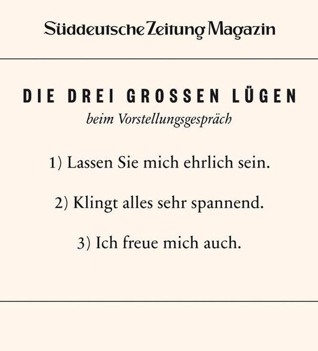 18. März 2016Die drei großen LügenDie drei großen Lügen – ArchivJeder Mensch lügt 200 Mal am Tag. Und die anderen fallen 200 Mal drauf rein. Das muss nicht sein: In dieser Rubrik sammeln wir die größten Lügen in allen Lebenslagen. Vorheriges Bild Nächstes Bild Die drei großen LügenStartseite > Themen > Die drei großen Lügen > Die drei großen Lügen – Archiv