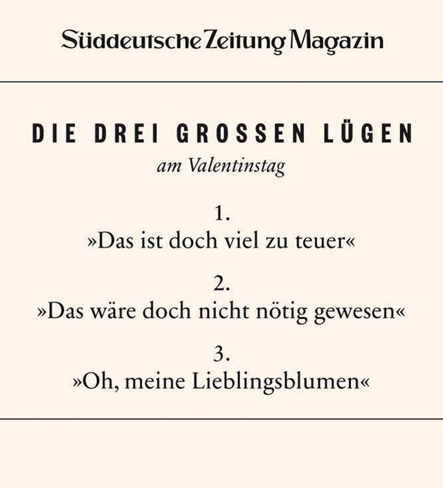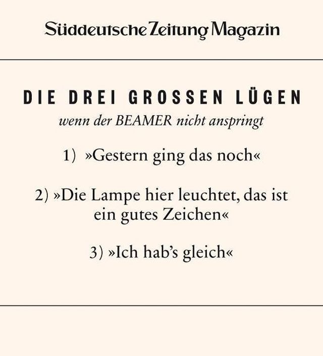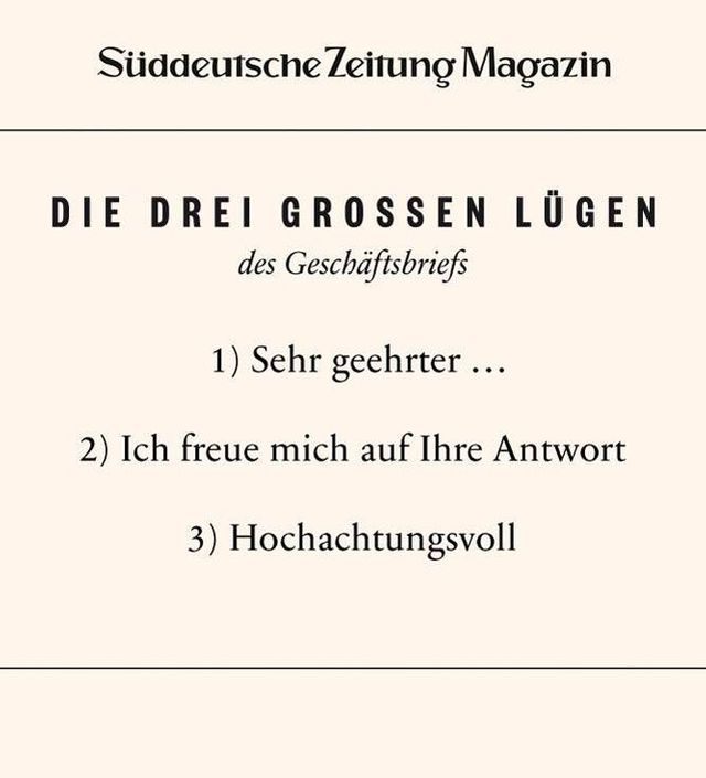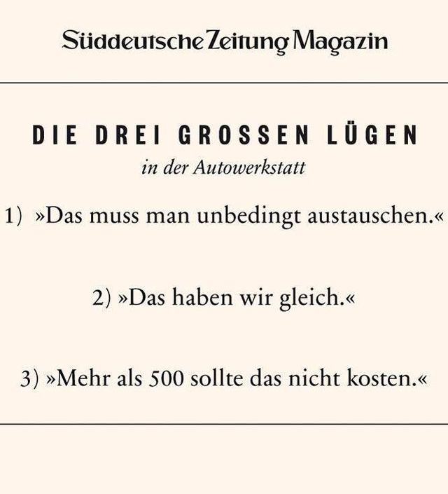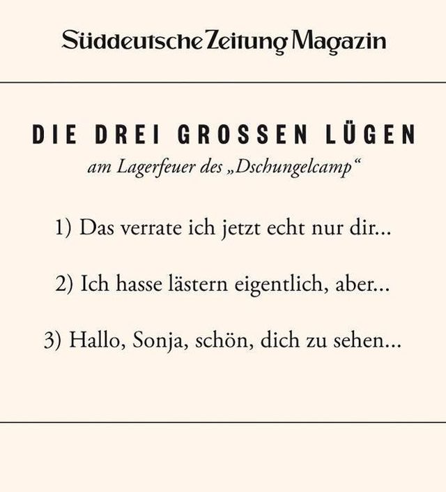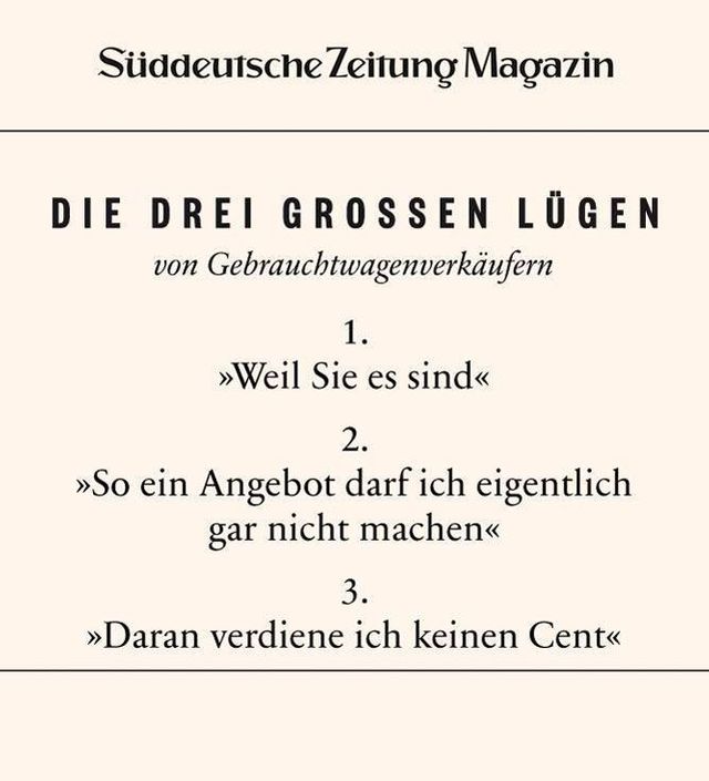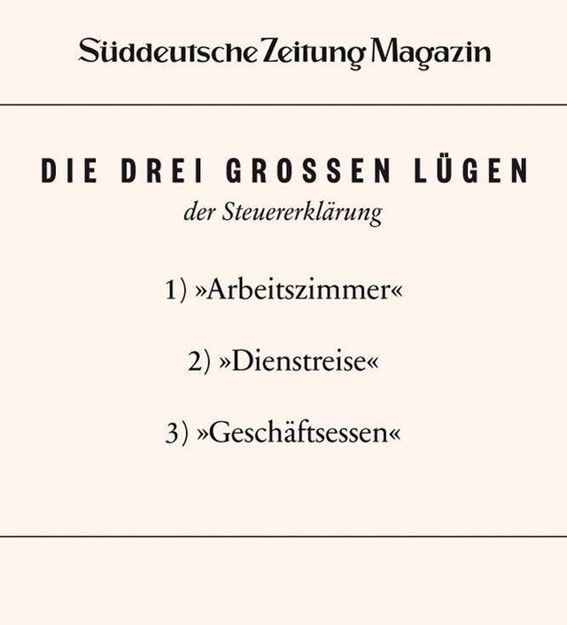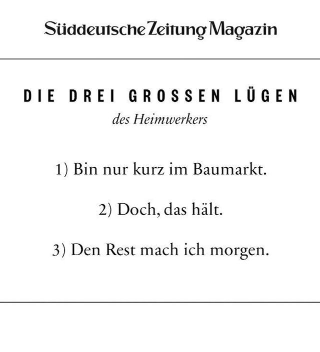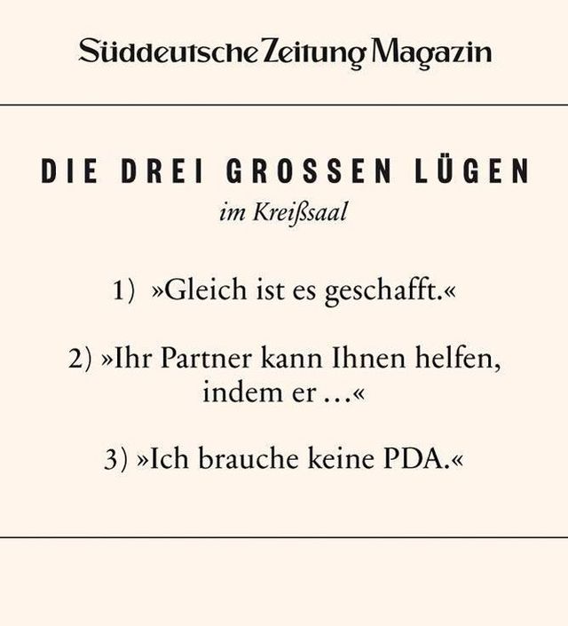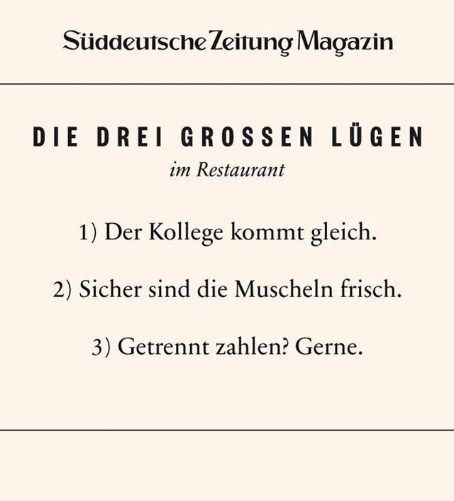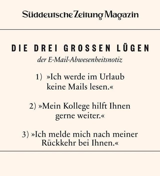 18. März 2016Die drei großen LügenDie drei großen Lügen – ArchivJeder Mensch lügt 200 Mal am Tag. Und die anderen fallen 200 Mal drauf rein. Das muss nicht sein: In dieser Rubrik sammeln wir die größten Lügen in allen Lebenslagen. Vorheriges Bild Nächstes Bild Die drei großen LügenStartseite > Themen > Die drei großen Lügen > Die drei großen Lügen – Archiv