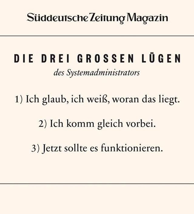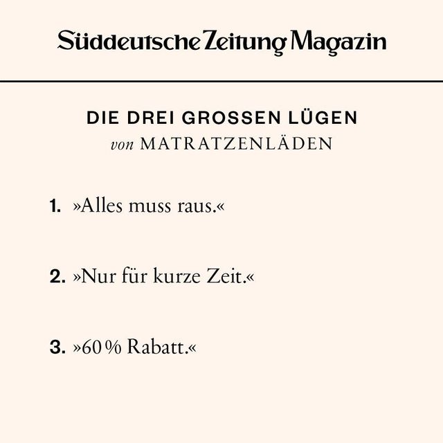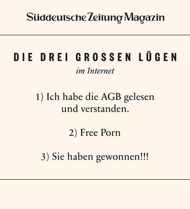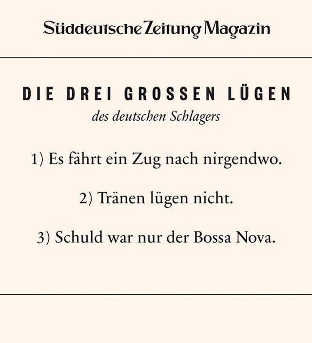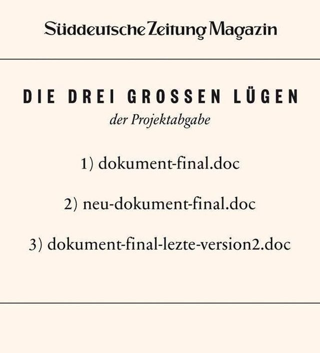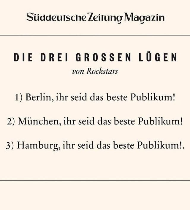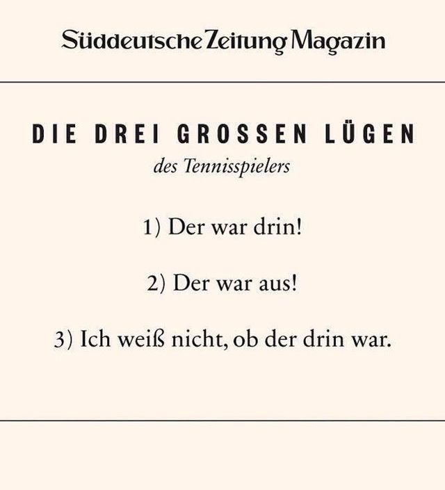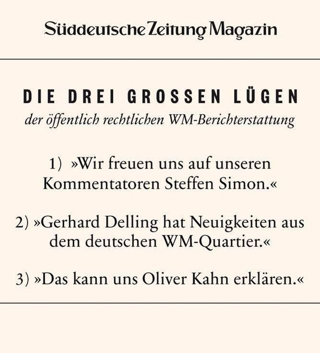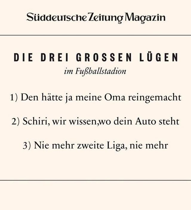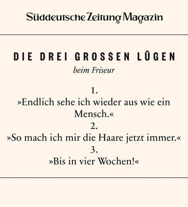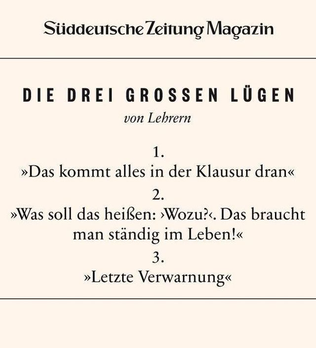 18. März 2016Die drei großen LügenDie drei großen Lügen – ArchivJeder Mensch lügt 200 Mal am Tag. Und die anderen fallen 200 Mal drauf rein. Das muss nicht sein: In dieser Rubrik sammeln wir die größten Lügen in allen Lebenslagen. Vorheriges Bild Nächstes Bild Die drei großen LügenStartseite > Themen > Die drei großen Lügen > Die drei großen Lügen – Archiv