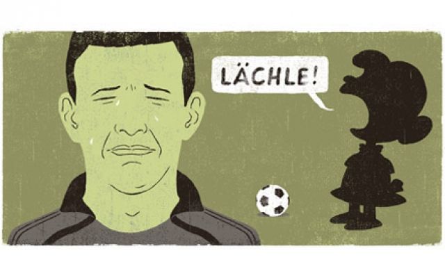 In einer Folge der amerikanischen Cartoons Die Peanuts herrscht Lucy ihren Freund Charlie Brown an: »Lächle!« Auf dem nächsten Bild steht der arme Charlie Brown da und versucht krampfhaft zu lächeln, während Lucy sagt: »Ich bin eine positive Kraft.« Was das hier soll? So ähnlich stelle ich es mir vor, wenn ein Fußballer sich aus »verdammter Pflicht« auf Befehl freuen soll.