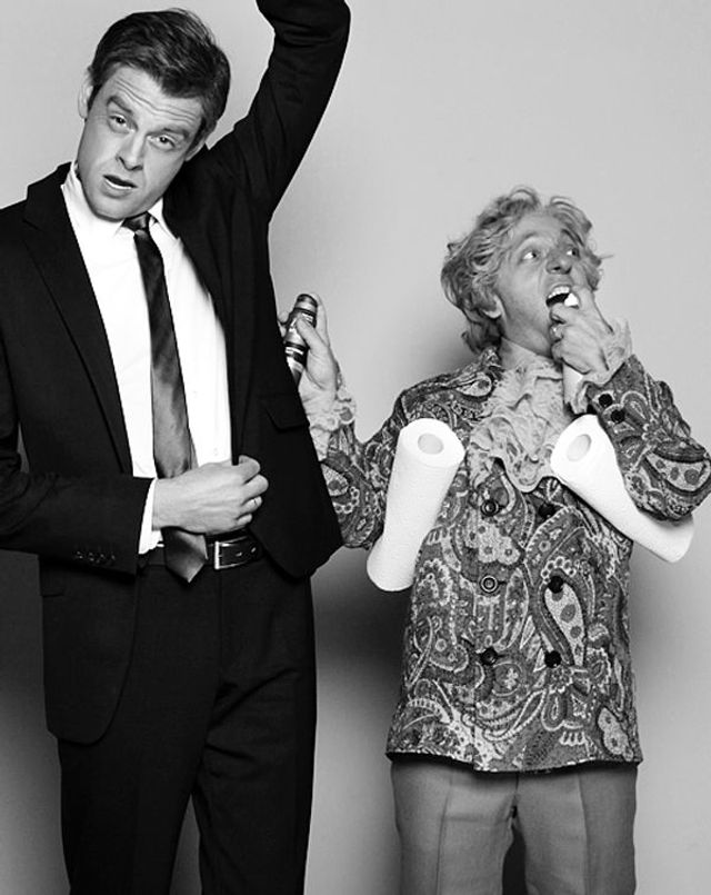Eigentlich hatte unser Fotograf auf Max Giermann und Bernhard Hoëcker gewartet, stattdessen bogen Markus Lanz und Thomas Gottschalk um die Ecke. In aller Freundschaft – unmöglich. Es waren natürlich die Darsteller der Comedy-Show Switch reloaded, die bis eben noch im Kostüm vor den Kameras standen auf dem Produktionsgelände von ProSieben An der Hasenkeule in Köln. Aus aktuellem Anlass drehten sie ein Spezial zu Wetten, dass ..?, ProSieben zeigt es am 1. Oktober um 22.15 Uhr – also noch vor der Premiere des Originals mit Markus Lanz. In Switch reloaded wird parodiert, was wir unter der Woche genervt wegzappen: Kochsendungen, Castingshows, Reality-Soaps. Selbst ihre Senderkollegen sind nicht sicher vor ihnen. Giermann, Hoëcker und ihre Crew wandeln Fremdscham in Satire, und weil sie das sehr gut machen, sind sie die Hoffnung aller Fernsehkritiker. Da wird eine »Hyperrealität« heraufbeschworen und das »Wesen deutscher Fernsehpromis« in einer Handbewegung oder einer Kunstpause wiedererkannt. Warum also das Original gucken, wenn die Parodie viel lustiger ist?