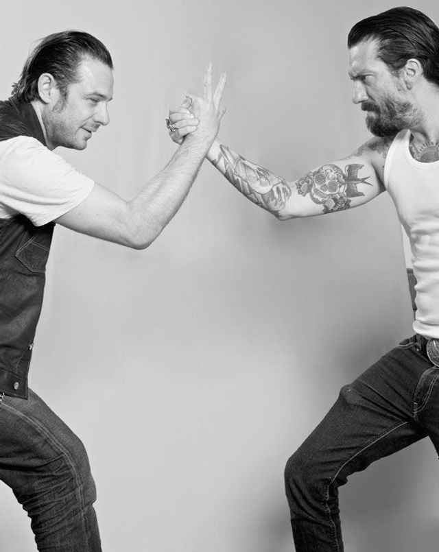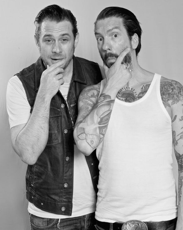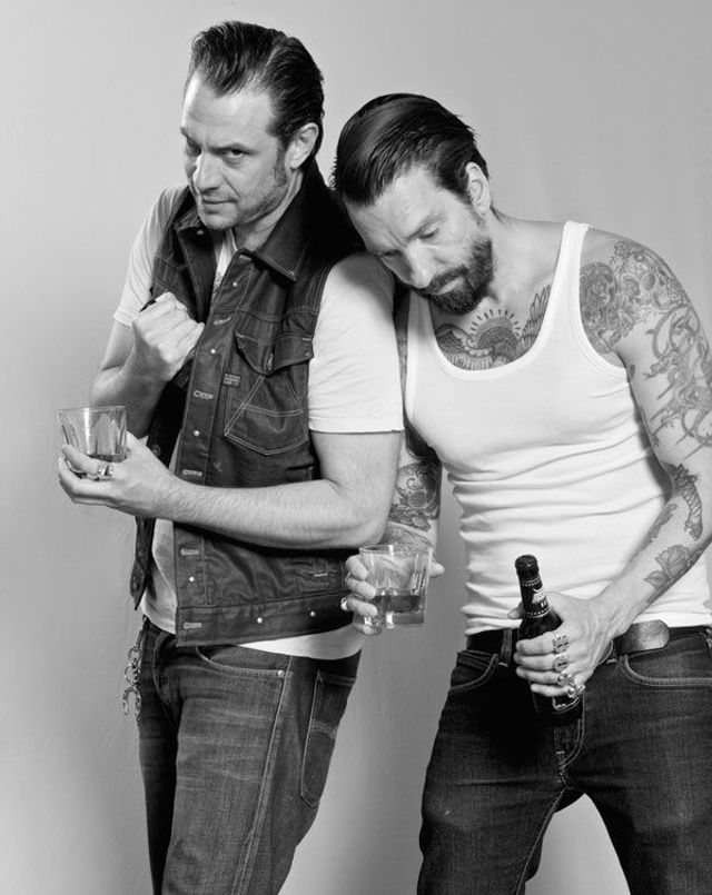 Cowboys trifft man in der Prärie. Oder in der urbanen Steppe, in der es ja häufig ebenso grausam zu-, mindestens aber ums Überleben geht. Sascha Vollmer, genannt Hoss Power, und Alec Völkel, genannt Boss Burns, die Frontmänner von The BossHoss, empfangen zum Fototermin in einem Lagerschuppengelände; im Erdgeschoss befindet sich eine Spielothek, drüber residiert die Band, gegenüber steht eine Tankstelle. Mit etwas Fantasie kann man sich hier wie in Arizona fühlen, in Wirklichkeit ist man in Berlin, immerhin im wilden Osten der Stadt. Zehn Jahre ist es her, dass die beiden zusammen mit einem Kumpel ihre Country- und Western-Band gegründet haben. Seitdem fuchsen sie sich in sämtliche Spielarten des Showgeschäfts hinein, ohne dass man es ihnen übel nehmen könnte. Denn natürlich schickt es sich für zwei Outlaws nicht, den Jurysitz in einer Castingshow zu übernehmen, aber was soll man sagen, Für ein paar Dollar mehr ist halt ein Klassiker des Western-Genres. The BossHoss kriegen es hin, die nie ganz bezwingbare Sehnsucht nach Freiheit und Abenteuer in unseren Angestelltenseelen zu kitzeln – natürlich hübsch abgesichert mit einem Fondssparplan. Dos Bros, das Doppelalbum zum Bandjubiläum, erscheint am 25. September.
