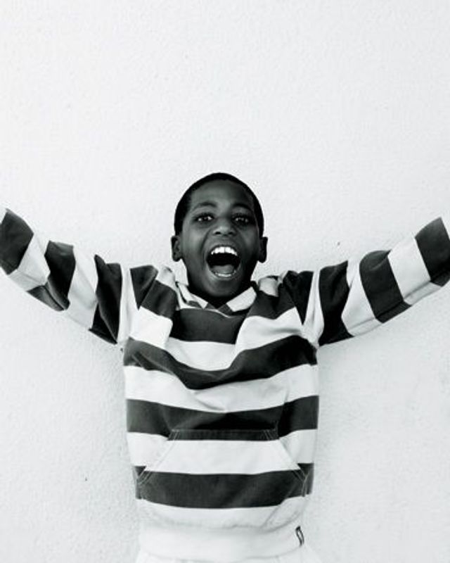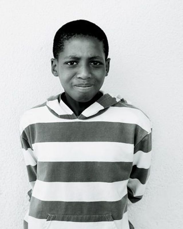 Steht hier die Hoffnung des südafrikanischen Fußballs? Eher nicht – eigentlich will Tshepiso, Torwart der »Super Spars« aus Soweto, mal Polizist werden. Seine Tanten sagen immer, du musst was mit Zukunft machen. Also gut, sagt Tshepiso, dann eben Polizist. Aber bis dahin hechtet er jeden Nachmittag nach Bällen auf dem Bolzplatz von Meadowlands, dem Stadtteil von Soweto, wo er mit 14 Cousins, Tanten und Onkeln in drei Zimmern wohnt. Seine Eltern sind mit den beiden Schwestern vor Kurzem in ein anderes Viertel gezogen, doch Tshepiso wollte bei bei seinem Team bleiben – Ehrensache! Name: Tshepiso Thaela Geboren: 20. Januar 1998 in Soweto, Johannesburg, Südafrika Beruf: Schüler Ausbildung: 6. Klasse Grundschule Status: immer zu elft
