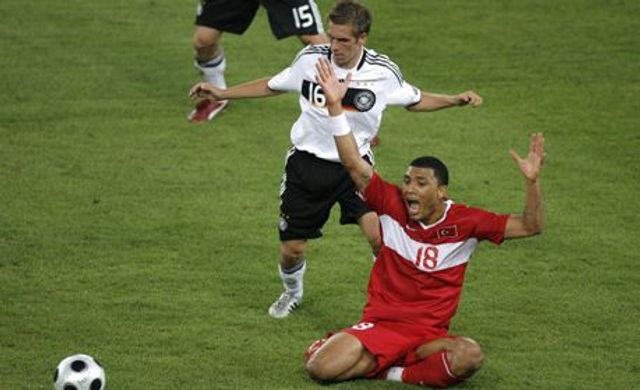 Während das ganze Land inklusive Michael Ballack vor dem drohenden türkischen Last-Minute-Tor zitterte, verwandelte Philipp Lahm in der 90. Minute nervenstark zum 3:2. Auffallend dabei: Zeitlupe und Momentaufnahmen zeigen einen zutiefst entschlossen, ja finster dreinblickenden Lahm. Dabei helfen ihm seine imposanten Augenbrauen. Sowohl die Haardichte pro Quadratmillimeter als auch der markante dunkelbraune Farbton verleihen dem knabenhaftem Gesicht bei Bedarf Strenge und Autorität. Dem Dauerläufer und Vorzeigesprinter Lahm helfen die kräftigen Augenbrauen zudem durch überdurchschnittlich hohe Schweißabsorption, was auch erklärt, warum er sie nicht wie manch moderner Mann stutzt. Beobachtung am Rande: Der auffallende dunkle Balken oberhalb seiner Augen findet sich als Stilelement im Trikot der deutschen Nationalmannschaft wieder - auch hier ist der schwarze Streifen etwas zu groß geraten. Dass die Designer damit eine Hommage an Philipp Lahm im Sinn hatten, ist natürlich totaler Quatsch, dass sowohl Lahms Augenbrauen wie auch das deutsche Trikot Europa das Fürchten gelehrt haben, steht hingegen mit dem Finaleinzug fest.