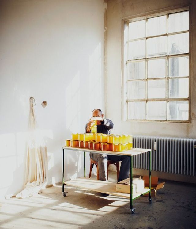 Manchmal verwendet der Künstler seine Honiggläser als Teil einer Ausstellung. Zu kaufen sind sie in kleinen Feinkostläden und auch Buchhandlungen, zu Preisen, die nicht höher sind als bei anderem Honig. Das gefällt Scheuerecker. Er will, dass wir seinen Honig schmecken: »Menschen, die ich nicht kenne, essen den Honig meiner Bienen. Das ist ein gutes Gefühl.«