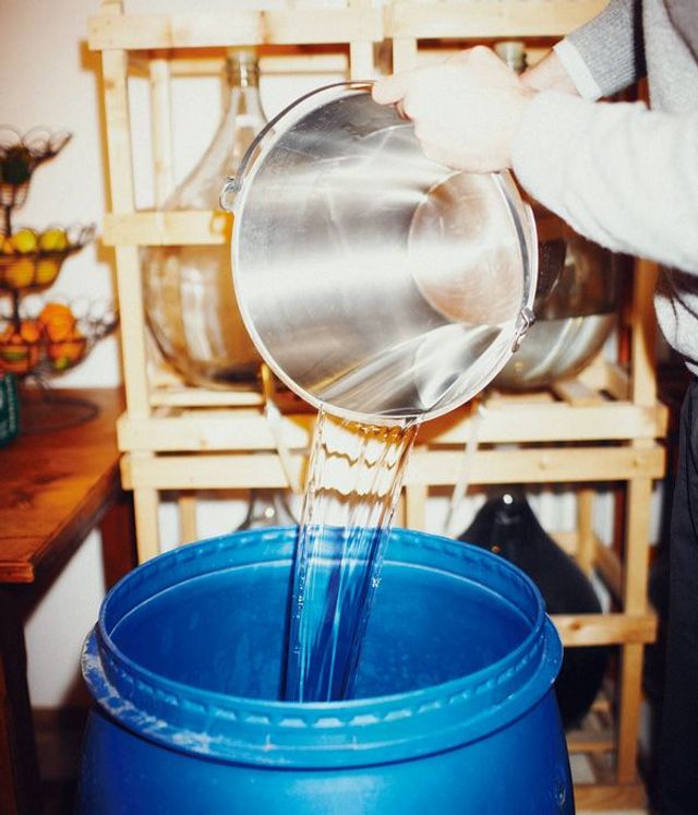 Nachmittags um drei ist die Luft in der Destille längst einem aromasatten Dunst gewichen. Der Raubrand ist fast fertig, der Eimer mit dem Nachlauf, also dem Alkohol, der nicht zu verwenden ist, randvoll. Jeder Atemzug ein kleiner Schluck.