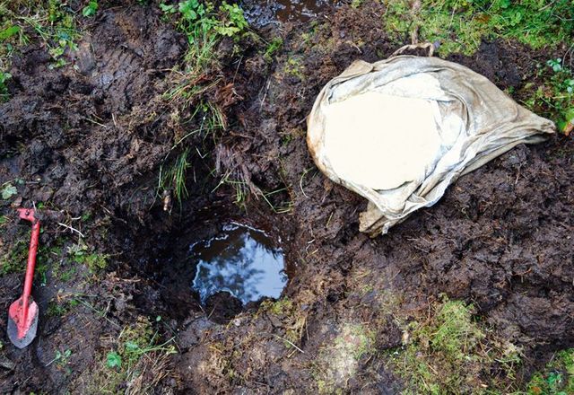 Fast hätte Tobias Müller keine Bog Butter kosten können. Johannson stocherte 15 Minuten vergeblich mit dem Schirm im Torf, bis er sie doch noch fand. Sie schmeckte relativ mild, gar nicht nach Wald. Sie lagerte aber auch erst ein paar Wochen.