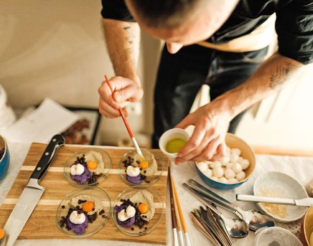 Telse Bus also macht Konzepte. Sie denkt darüber nach, wie Menschen essen können, wenn Essen mehr ist als Nahrungsaufnahme, Energiezufuhr, Magenvolltanken. Sie überlegt sich, wie eine Küche sein könnte, die mit den Ausgangsprodukten etwa so umgeht, wie ein Künstler es mit Farben, Texturen, Materialien macht. Oder ein Technomusiker mit Geräuschen. Sie zerbricht sich den Kopf darüber, wie sie Menschen, die sich Gedanken über die Effekte der Massentierhaltung machen, so bekochen kann, dass sich bei ihnen nicht das Gefühl einstellt, sie müssten auf etwas verzichten. Sie fragt sich, wie man Gemüse so glamourös machen kann, dass man es nicht aus Einsicht und Vernunft isst, sondern aus Lust und Gier. So ungefähr ist das, was Telse Bus macht. Und wofür man sie engagieren kann. Nicht als Köchin, wie gesagt. Sondern als Konzepterin, Beraterin, Gedankenmacherin. Sie verkauft Inszenierungen. Eine temporäre Imbissbude für eine Kunstzeitschrift auf einer Kunstmesse zum Beispiel. Oder einen Abend mit futuristischen Gerichten, die zu einem so konservativen Getränk wie Cognac passen. Oder das Catering für den Empfang eines Fashion-Labels. Ihre Visionen vom richtigen Essen tauchen nur blitzartig auf, bei Partys, Abendveranstaltungen, in temporären Lounges, unter immer wechselnden Adressen, bei Gelegenheiten, für die man auf Gästelisten stehen muss.