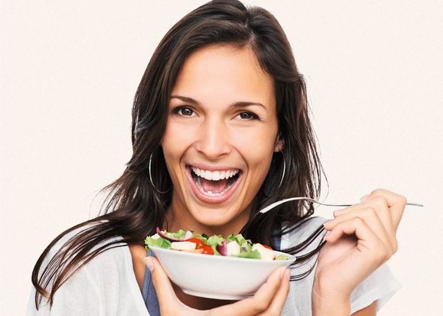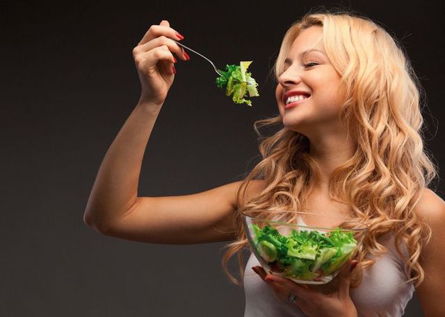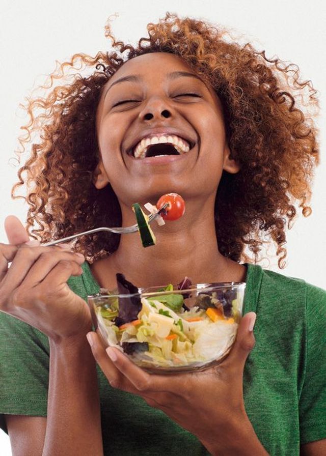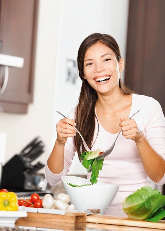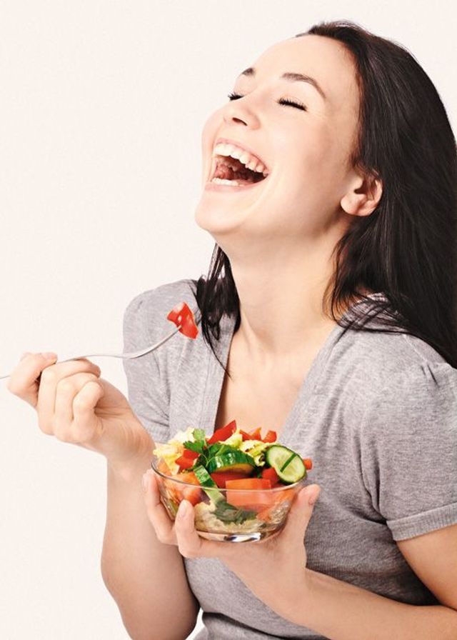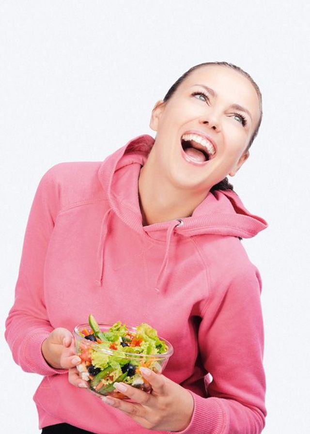 Aber warum? Was wollen die uns mit ihrer penetranten Fröhlichkeit verkaufen? Es ist nicht die Mahlzeit Salat, sondern was man durch diese Mahlzeit erreicht: nämlich einen schlanken Körper, schöne Haut, tolle Haare. Diese Bilder zeigen kein Abendessen, sondern ein Arbeitsessen. Sie machen Werbung für die Frau, die man sein könnte, wenn man auch immer schön Salat äße: attraktiv und super happy. Im echten Leben sehen Frauen, die Salat essen, natürlich ganz anders aus. Nämlich gestresst. Schließlich müssen diese faserigen Blätter erst mal zerkleinert werden, dann kann man sie nicht mal aufpicken, sondern muss sie umständlich mit Messer und Gabel zusammenraffen – und das alles nur, um auf kalter Konsistenzlosigkeit herumzukauen. Selten haben Bilder mehr gelogen als diese.