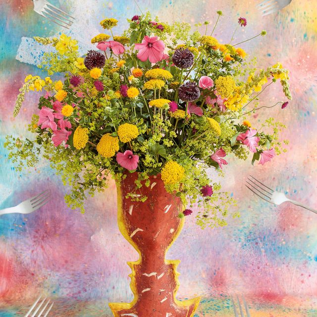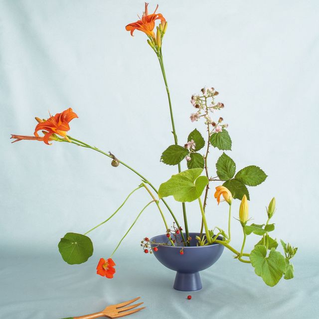 Den Backofen auf 200 Grad Umluft vorheizen. Die Dahlienknollen schälen und die Prärielilienzwiebeln waschen, längs halbieren und mit 3 EL Olivenöl und 2 EL Zitronensaft in einer Schüssel mischen. Salzen und pfeffern. Die gepresste Knoblauchblüte dazugeben, alles auf einem Blech im Ofen etwa 25 Minuten weich garen, dabei zwischendurch umdrehen (je nach Größe der Knollen und Zwiebeln kann die Garzeit variieren). Blüten und unreife Samen von den Fencheldolden abstreifen, grob hacken, Die Blütenblättchen von den Dahlienblüten abzupfen. Beides mischen, mit etwas Olivenöl und Zitronensaft marinieren, über die fertigen Knollen und Zwiebeln streuen.