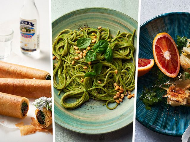 Gut behütet – Tischdecke »Gracie«, Salznapf mit Löffel und Schale von Sigvard Bernadotte, weiße Keramik (kleine Etagere, große Schüssel und Teller, Tablett »Touch« aus Ahorn, darauf Löffel aus Eichenholz der Serie »Pure« und Sieb
