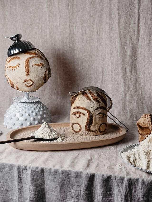 Die schwedische Künstlerin Linda Ring macht vor, wie man beim Brotbacken Gesicht zeigt. Zusammen mit den passenden Küchenaccessoires wird so jeder Tisch zu einer Schauspielbühne.
