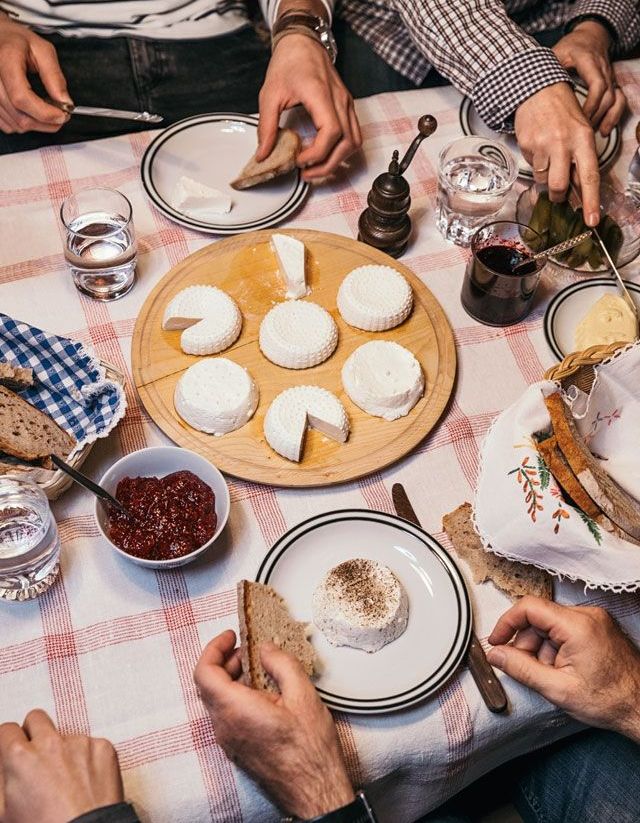 Sage mir, was du isst, und ich sage dir, was du bist. An diesen Satz des französischen Philosophen Jean Anthelme Brillat-Savarin muss ich denken, als ich die Förmchen umdrehe, den Käse auf einen Teller stürze und ihn zusammen mit Hos meiner Großfamilie serviere. Die gereifte Magermilch – das ist schon der Käse. Ihm wird weder Lab noch etwas anderes zugesetzt. Ich habe so einen Käse nie anderswo gesehen oder gegessen.