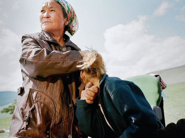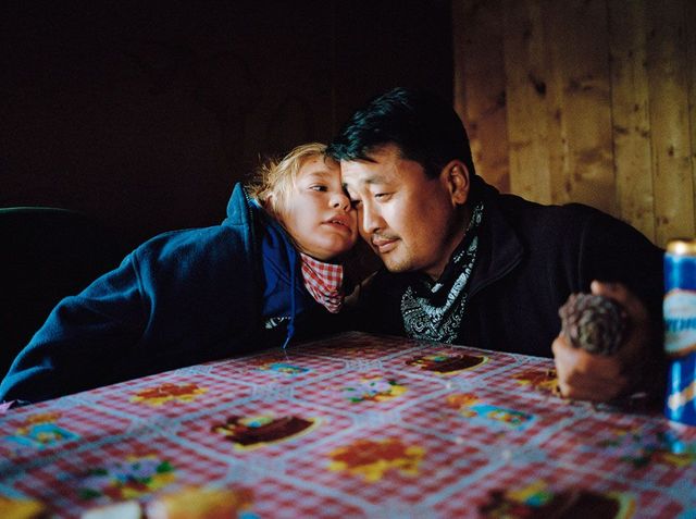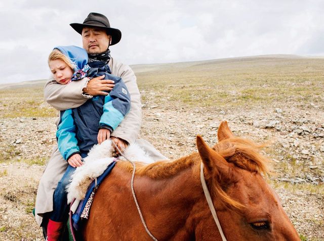 An diesem Abend öffnet Lotte Tulgas Herz. Wir sitzen alle zusammen an einem langen Tisch in einer Holzhütte, als Lotte plötzlich ihre Ärmchen ausstreckt und um seinen kräftigen Hals legt. Hastig und etwas grob übersät sie sein Gesicht mit feuchten Küssen und kleinen Essensresten. Vielleicht dankt sie ihm so für das Abendessen. Vielleicht spürt sie auch, dass sie die nächsten Tage mit Tulga auf einem Pony sitzen und sich sogar einen unbequemen Holzsattel teilen wird. Tulga genießt es, im Mittelpunkt zu stehen. Lottes Spucke scheint ihn nicht zu stören, und er erwidert warmherzig die Umarmungen.
