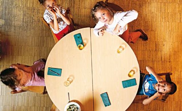 Als Anke Richter vor acht Jahren die Leitung der Kita übernahm, herrschte noch das starre System von zwei Gruppen mit jeweils 25 Kindern nach Stundenplan, das den Erzieherinnen die Arbeit erleichterte. Sie führte mit ihrem vierköpfigen Team die pädagogische Idee des »offenen Hauses« ein, in dem die Kinder entscheiden, ob sie nun lieber turnen oder basteln, mit wem, wo oder was sie spielen wollen. Die Räume heißen »Sonnenzimmer« oder »Regenbogenland«; es gibt ein Experimentierzimmer, eine Werkstatt. An den Stufen zum Turnraum kleben Zahlen, so lernen die Kinder ganz nebenbei das Zählen, ein Wasserplanschbecken vermittelt Grundkenntnisse der Physik.
