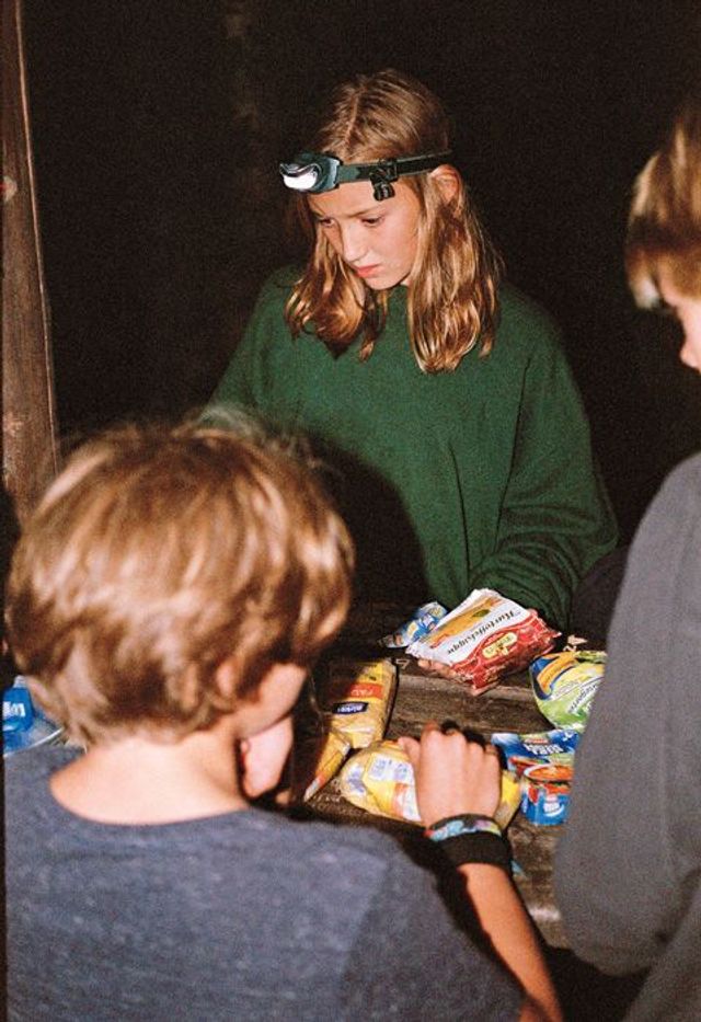 »Wir machen die Augen zu beim Essen, es gibt eh jeden Tag das Gleiche«, sagt Luna. Sie taucht den Aluteller in den See, aber der Fettfilm lässt sich mit kaltem Wasser nicht abwaschen. Sie und die Jungs, die zu Hause einen Löffel nicht zweimal benutzen, sind jetzt abgehärtet. Als die Packung platzt und die Nudeln auf den Waldboden fallen, werfen sie sie samt Stöckchen und Blätterresten ins kochende Seewasser.