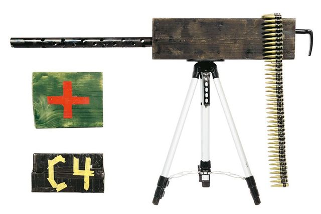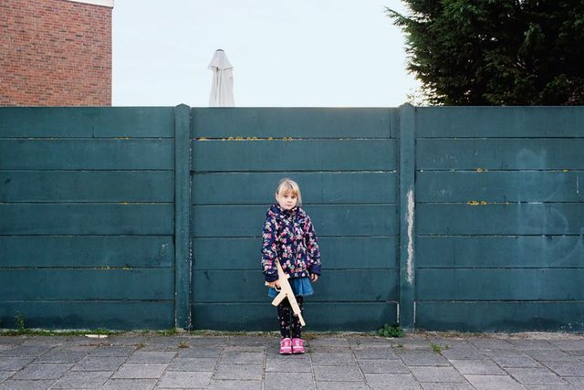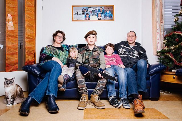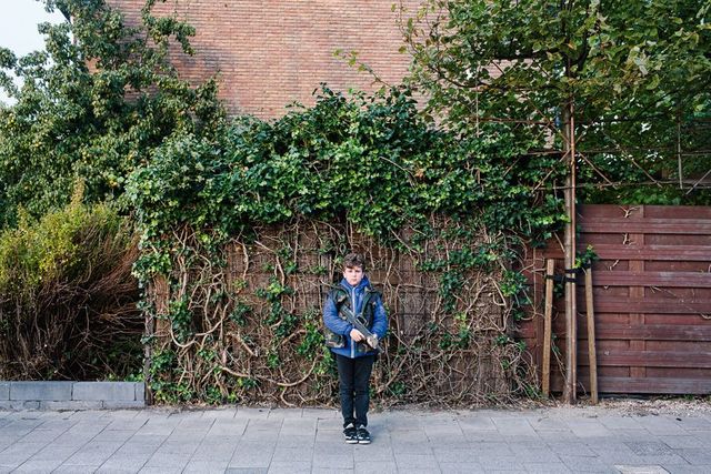 Der Rückzug aus der Kindergarten-Kampfzone war ein Erfolg. Weder die Kindergärtnerin hat Timon erwischt noch der Feind: Mirco, zehn Jahre, im Mund ein Erdbeerkaugummi, unterm Arm einen Schnellfeuer-Karabiner. Und Lidianne, sechs Jahre alt, Zöpfe, bewaffnet mit einem Stofftiger, der ein Armeetuch trägt. Harte Gegner, ob Timon und seine Verbündeten da nicht weitere Waffen holen sollen? Im Arsenal, also der Garage. Neben Rollerskates und Fritteuse lagern dort: ein Scharfschützengewehr, ein vollautomatischer Schnellfeuerkarabiner, ein Maschinengewehr, eine Browning, eine Thompson, insgesamt 26 Waffen, alles selbst gebastelt, dazu Panzerfaust, Handgranaten, Wüstenkleidung, Helme, Gasmasken, ein Defibrillator. Was man eben so braucht im Krieg. Der Auftrag heute: dem Feind die Flagge entreißen.