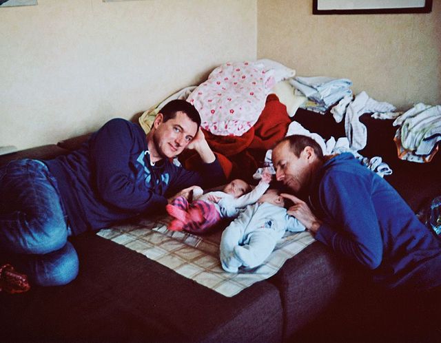 Anna liegt auf den Beinen von Jürgen Haase, sie lächelt ihn an, hält seinen Finger fest umkrallt. »Wir sind jetzt mit den Kindern mehr Teil der Gesellschaft und nicht mehr die schwulen Außenseiter«, sagt Jürgen Haase. Dann schaut er Anna in die Augen. »Alles klar?«