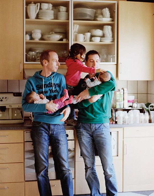 Bei Familie Haase ist es im Moment so: Nach US-Recht sind sie beide Eltern von Anna und Alisha, sie stehen beide in der Geburtsurkunde. Noch als die Zwillinge im Bauch der Leihmutter waren, hat ein US-Familienrichter entschieden, dass die Haases ihre Eltern sein werden. Nach deutschem Recht allerdings ist Axel der Vater, Jessica Sanchez die Mutter. Jürgen Haase besitzt kein Sorgerecht. Zurzeit liegt ein Verfahren vor Gericht. Axel und Jürgen Haase wollen, dass die US-Geburtsurkunde von den deutschen Behörden anerkannt und eine deutsche Geburtsurkunde ausgestellt wird. Dann würde Jürgen Haase einen Antrag auf Stiefkindadoption stellen, denn nach dem Lebenspartnerschaftsgesetz dürfen die leiblichen Kinder des Partners adoptiert werden. »Andere Paare genießen die ersten Monate mit ihren Babys sorglos«, sagt Axel Haase. »Wir müssen einen riesigen bürokratischen Berg bezwingen.«
