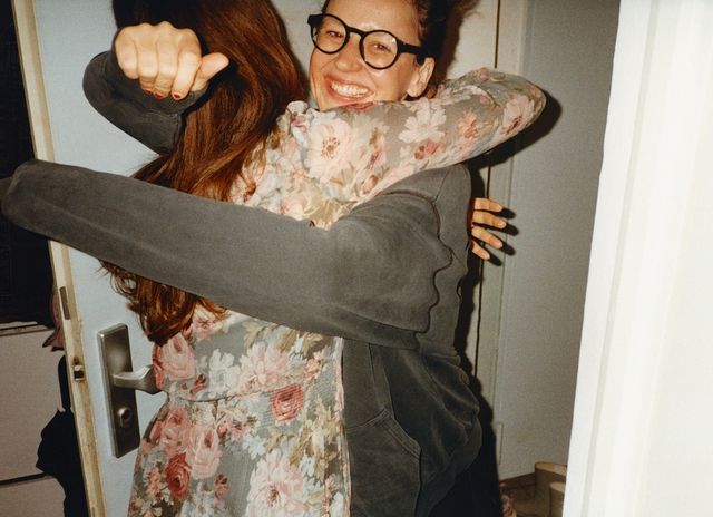 Die Autorin (mit Brille) umarmt ihre Freundin Paula. Ein Wiedersehen nach vielen Jahren – und das Gefühl, sich entschuldigen zu müssen.