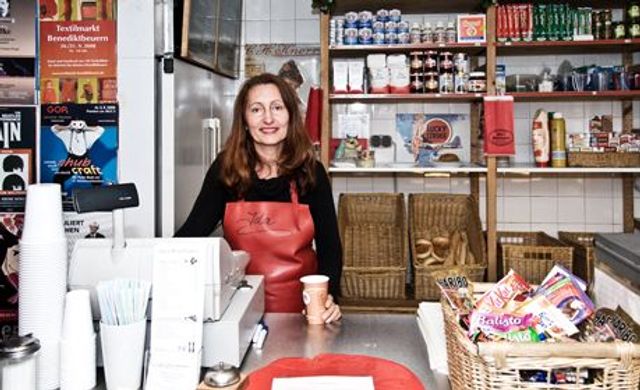 Vor zwei Jahren übernahm Barbara Kollmannsberger den Lebensmittelladen an der Ecke Metz-/Preysingstraße. Die Einrichtung aus den Fünfzigerjahren behielt sie und bietet seitdem Kaffee und allerlei Kleinigkeiten an, letzteres besonders für die Schüler der gegenüberliegenden Klosterschule.