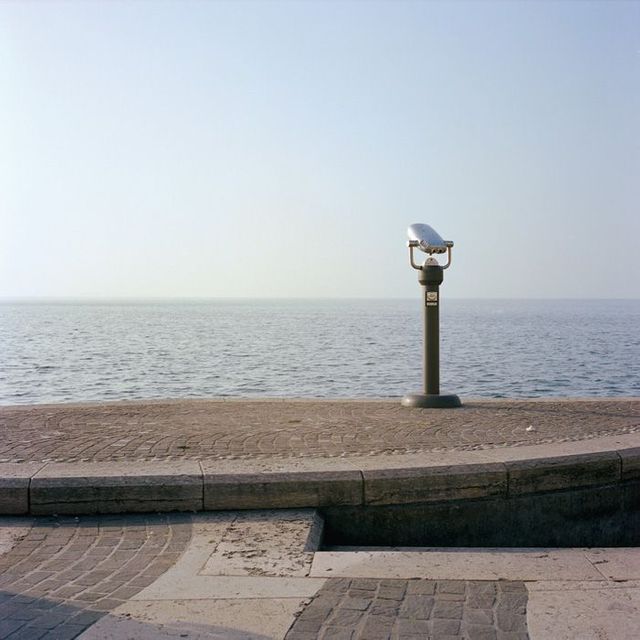 Darüber wunderte sich Standl und auch über seine anschließende Beobachtung: »Als die Menschen weg waren, wurde das Fernrohr zur Skulptur.« Seitdem lichtet er Münzfernrohre auf seinen Reisen durch die Welt immer wieder als solche ab. Liebgewonnen hat er sie auch wegen der enormen Vielfalt ihrer Bauart. Manche ähneln Flugabwehrgeschützen, einige sehen aus wie besonders gruselige Beispiele aus der Gerätemedizin, andere erinnern an ein Mikrofon, vor das sogleich Billie Holiday treten könnte. Eines, das aus Castelo de Vide in Portugal, ist sogar selbstgebastelt.