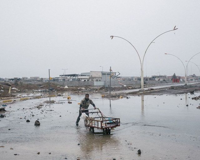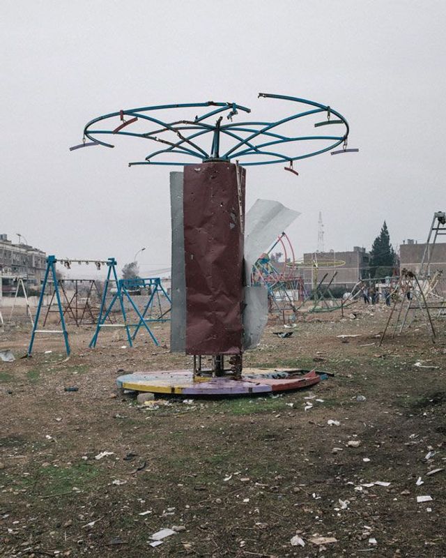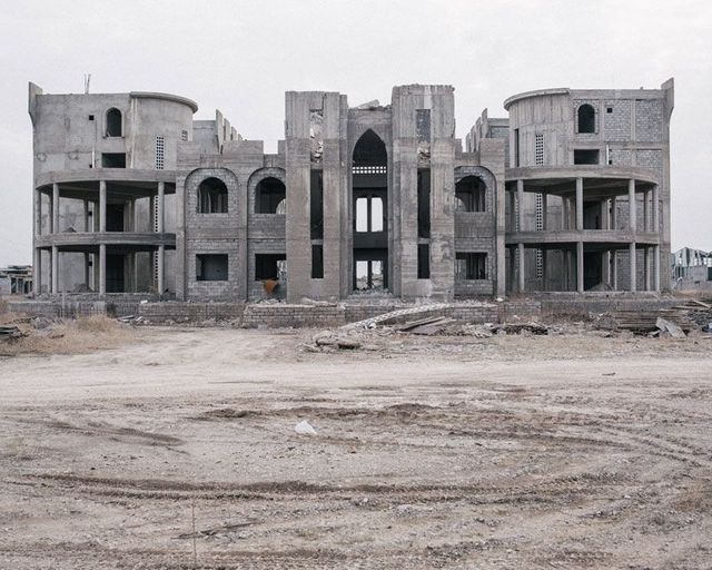 Robin Hinsch: So schwierig ist es gar nicht. Man fliegt nach Erbil, das ist die Hauptstadt der autonomen Kurdenregion im Norden des Irak. Dort ist es sicher und man kann man sich frei bewegen. Bevor ich nach Mossul gefahren bin, habe ich kurdische Dörfer wie Hamdaniya besucht, die lange vom IS besetzt waren. Ich hatte gehört, dass das aufgrund von Ölvorkommen mal relativ reiche Orte gewesen sind. Die Architektur ist dort sehr spannend, da verschiedene Stile aufeinandertreffen und auch teils brutalistische bis futuristische Elemente ihren Einfluss finden, die dadurch die Szenerie noch surrealer erscheinen lassen. Leider wurden diese Orte durch die Kämpfe der vergangenen Jahre weitgehend zerstört.