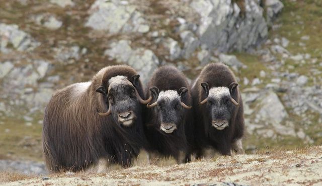 Diese Aufnahme stammt aus dem Dovrefjell-Nationalpark in Norwegen, dem einzigen Ort in Europa, wo Moschusochsen heimisch sind. Ich kam von Spitzbergen, wo ich Eisbären fotografierte und machte anschließend von Oslo aus einen Abstecher ins Dovrefjell, um die herbstlicher Tundra zu fotografieren. Moschusochsen sind übrigens gar nicht so ungefährlich. Man sollte sich ihnen sehr vorsichtig nähern und eine gewisse Distanz nicht unterschreiten. Ich war wohl dieser Gruppe schon etwas zu nahe gekommen, denn die Tiere rückten in einer Schutzformation zusammen und beobachteten jede meiner Bewegungen genau.
