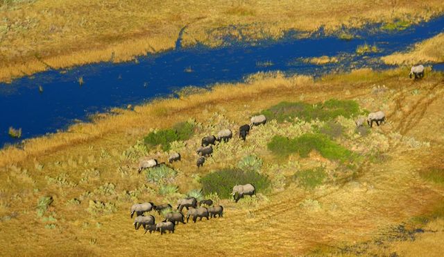 Ich organisierte im vergangenen Jahr mit mehreren Fotografen einen Rundflug über das Okavango-Delta in Botswana. Unser Ziel waren Luftaufnahmen von diesem großen Sumpfgebiet und nach Möglichkeit auch von Wildtieren im Wasser. Eine Stunde waren wir in der Luft und dann tauchte diese Elefantenherde auf. Es blieb uns nicht viel Zeit für Aufnahmen, denn schnell waren die Tiere außer Reichweite. Um gute Luftaufnahmen von Wildtieren zu machen, braucht man erfahrungsgemäß viel Zeit und (finanzielle) Ausdauer.