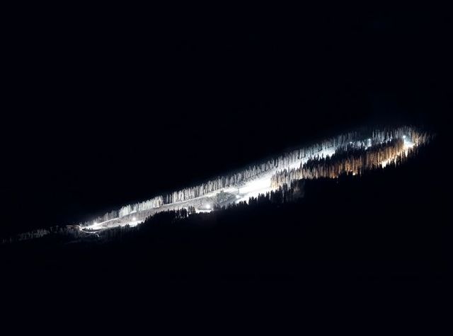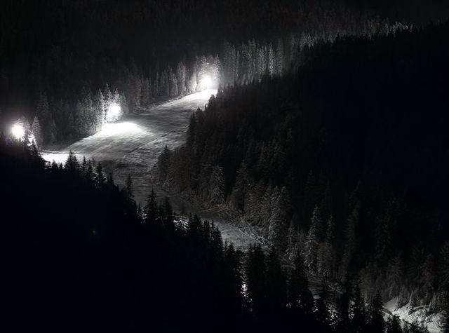 Unser Fotograf Olaf Otto Becker konnte das Nachtskifahren selbst nicht ausprobieren – wenn das Licht angeschaltet wurde, kauerte er bei bis zu minus 20 Grad frierend auf den gegenüberliegenden Bergkämmen, um alles aufs Bild zu bekommen.