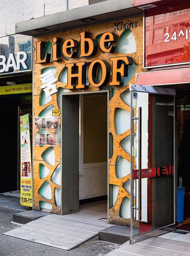 Die meisten Läden, wie die Galerie »Liebe Art Hall« oder die Kneipe »Lowen Hof«, werden von Koreanern betrieben und richten sich nicht an westliche Touristen, sagt Holtgreve. Er hat die Erfahrung gemacht, dass Koreaner kaum Deutsch verstehen, die Schrift aber lesen können, weil sie Englisch gelernt haben. »In Europa haben Firmen oft französisch oder englisch anmutende Namen«, sagt Holtgreve, »in Korea mag man auch deutsche Begriffe.« Deutsche gelten als streng und organisiert, und das sind in Korea geachtete Tugenden.