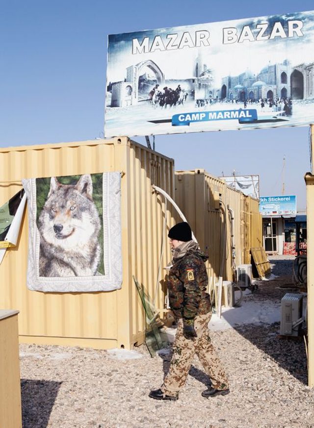 Im Lager gibt es einen afghanischen Markt, »Mazar Bazar« nennen ihn die Soldaten, dort kann man Bauchtanzkostüme kaufen, Schmuck aus Lapislazuli oder kleine Burkas als Dekoration für Flaschen. Mitbringsel, die besonders US-Soldaten lieben. Geschenke für ihre Kinder jedoch findet Maren Schulz im Feldlager-Shop im norwegischen Teil des Lagers, Süßigkeiten und Stofftiere, die sie per Feldpost schicken wird.