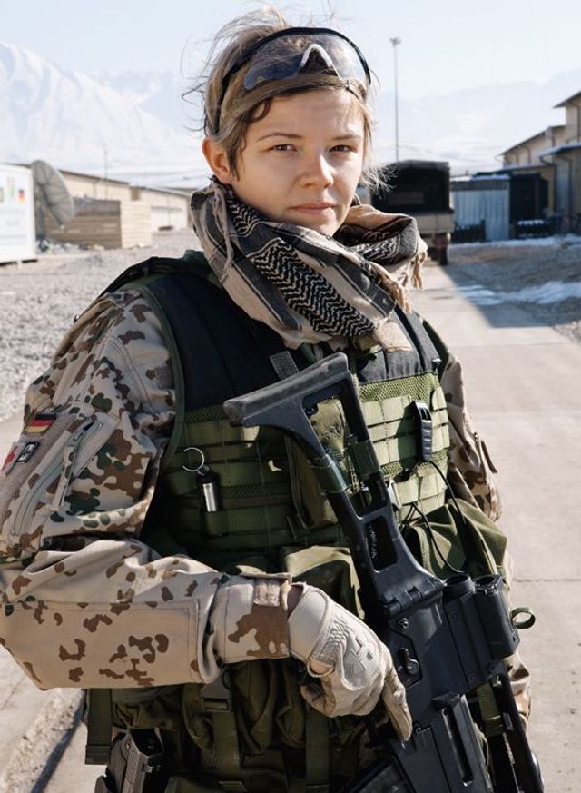 Für Frauen wie Nadine Luter, 27 – den Hauptfeldwebel, der die Search Girls einweist –, wird Mutterschaft zu einer besonders komplizierten Aufgabe werden: Sie arbeitet als Feldjäger in Afghanistan bei einer schwer bewaffneten Einheit, die jeden Tag in den Gefängnissen des Landes nach Menschrechtsverletzungen fahndet und afghanisches Militär ausbildet. Sie ist seit zehn Jahren Zeitsoldatin, hat sich jetzt als Berufssoldatin beworben, will sich zu weiteren Einsätzen verpflichten – und im Sommer heiraten. Dann soll das erste Kind kommen. »Ohne starken Partner, der sich um alles kümmert, ist das kaum vorstellbar«, sagt sie.